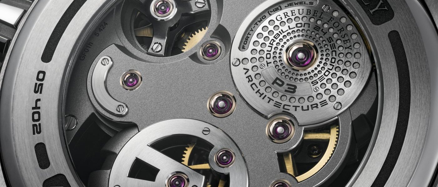 The 354 parts of the movement are sculpted and arranged asymmetrically yet harmoniously, almost as if they had issued from an organic growth process found in the natural world. Each component is suspended in an unexpected three-dimensional plane, yet it is exactly where it should be aesthetically, technically in relation to every other component. The movement is vibrant and urban, yet it has space to breathe. The Tourbillon 24 Secondes Architecture is a marvel of contemporary design and a physical manifestation of the Greubel Forsey Art of Invention.