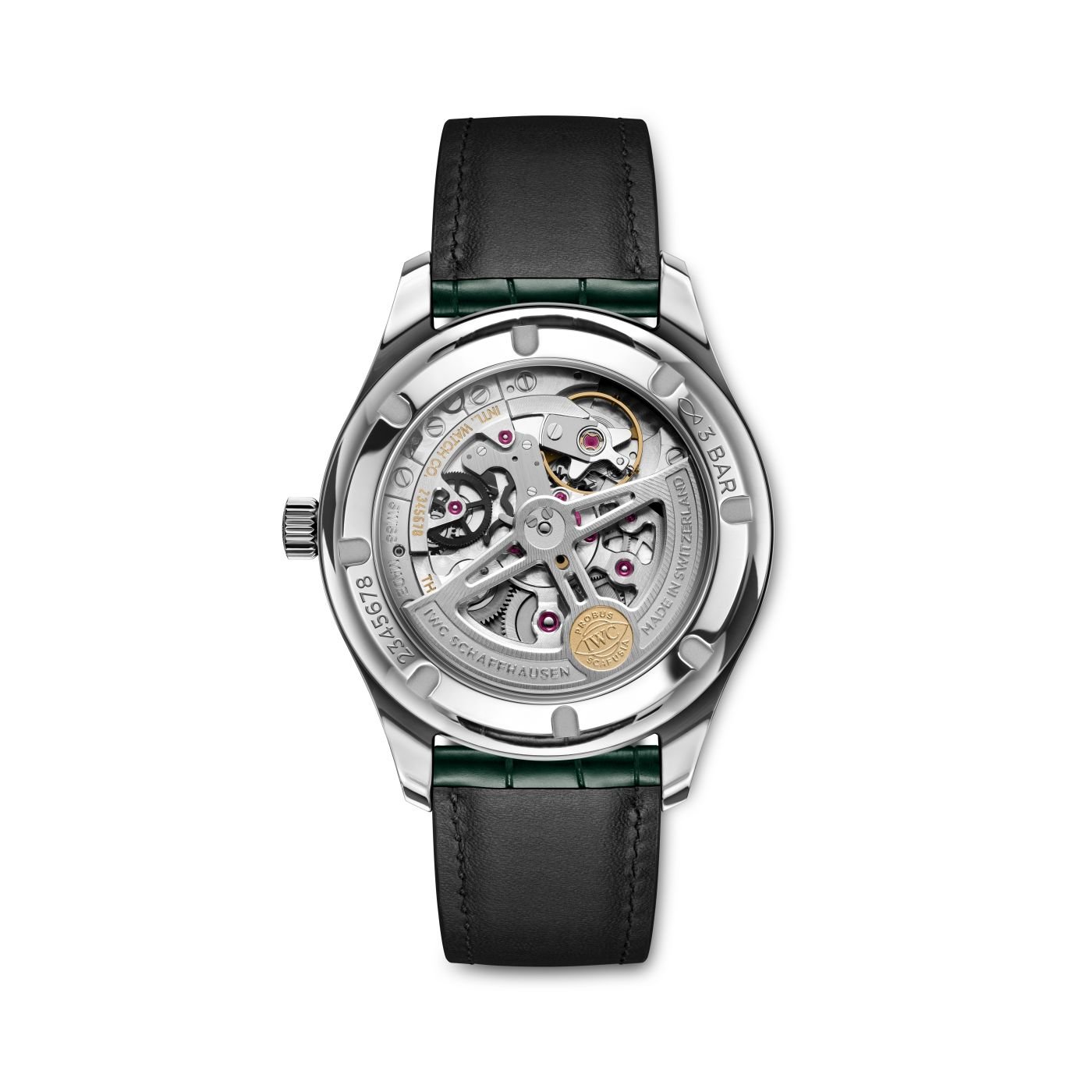 The timepiece with a 40-millimeter stainless steel case is powered by the IWC-manufactured 82200 calibre. The Pellaton winding system with ceramic components accumulates a reliable power reserve of 60 hours. A sapphire case back allows the owner to admire the elaborately finished movement.