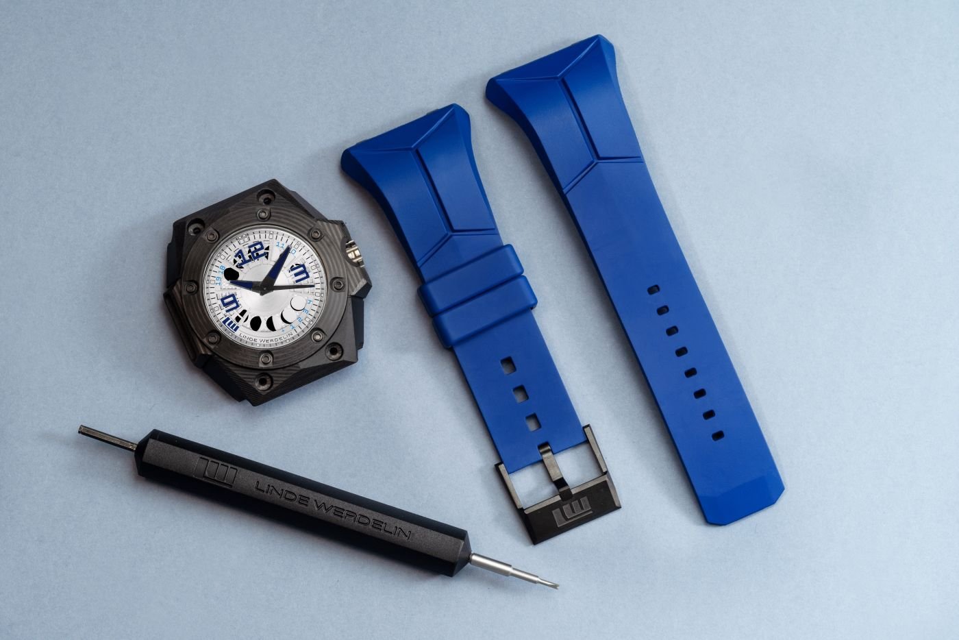 With a case weight of 60 grams, the Oktopus Moon 3DTP™ is now the lightest watch that Linde Werdelin has ever produced, (two grams less than the SpidoLite 3DTP™), making it an ideal sports and diver’s watch, with extreme depths of 300m under water.