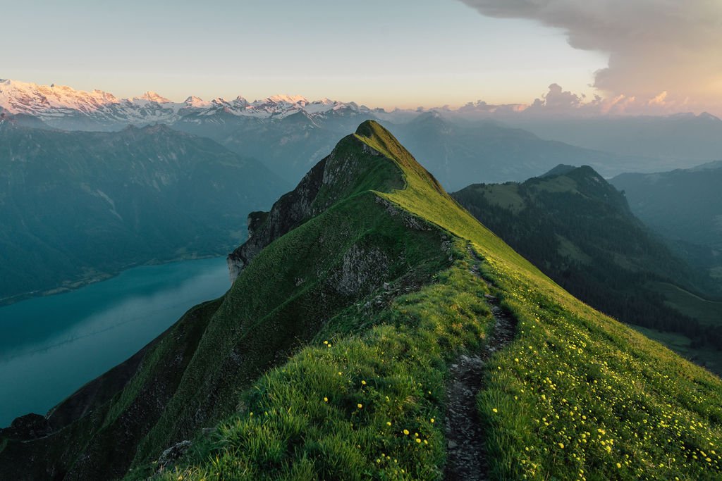 The colours that inspired the photographer include the green of the rolling fields of the Emmental, the deep red of the impressive mountain range of the Berner Oberland before dusk, the changing shades of blue of Lake Lucerne (Vierwaldstättersee), the black and dramatic rock surface of the Grimselregion, and the eternal whiteness of the Aletsch glacier.
