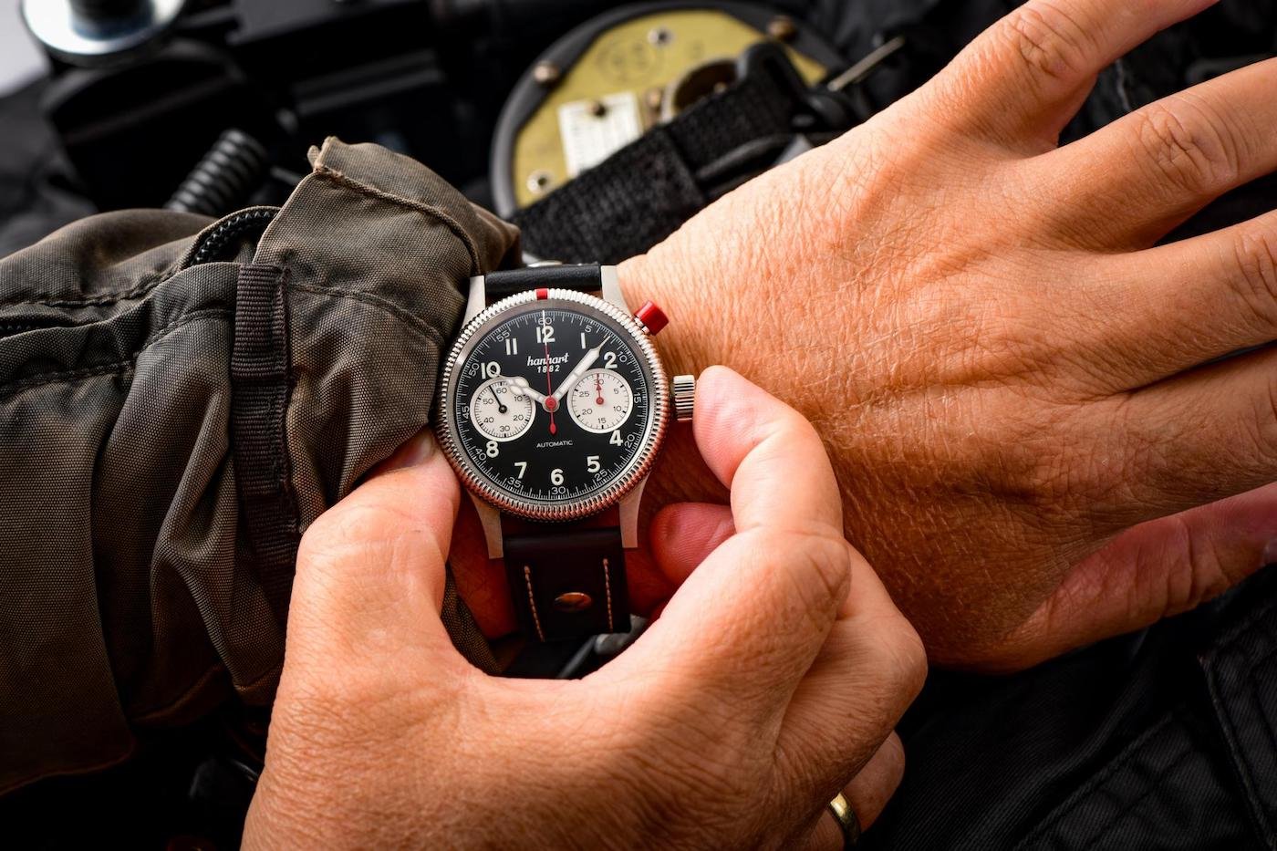 he construction and design of pilot chronographs follow clear criteria: readability, reliability and ease of use. Hanhart’s Pioneer Mk I model as a single-pusher chronograph and the Pioneer Mk II model as a chronograph with asymmetrical pusher distance are among the most iconic wristwatches from the German brand manufactured according to these requirements.