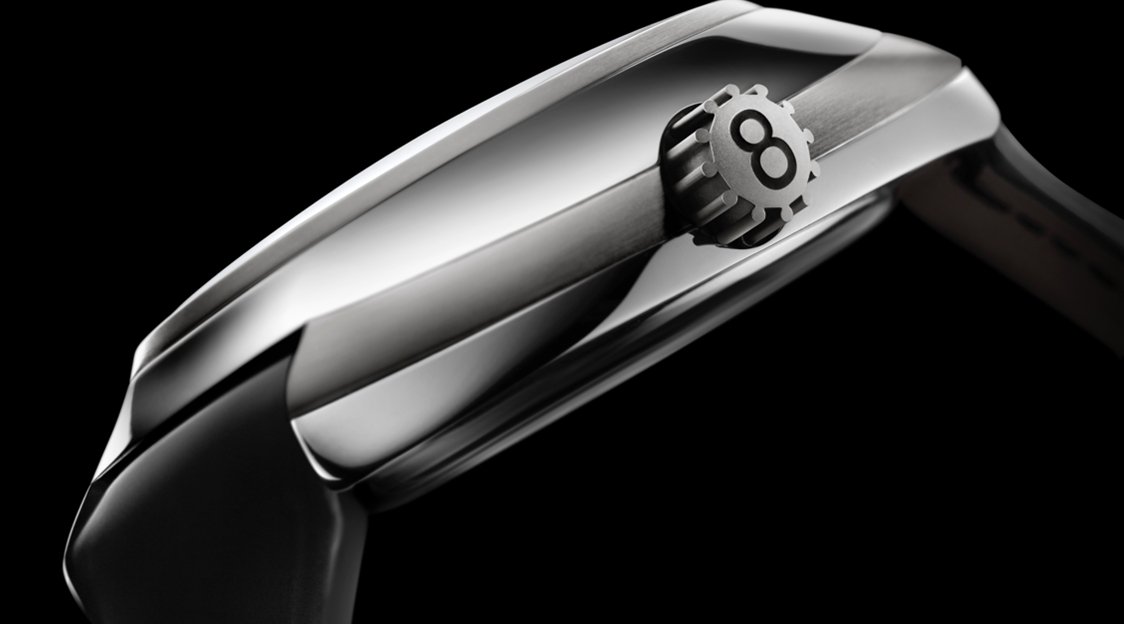 The bezel, slim and clean-cut, effectively counterbalances the impression of thickness. An inevitable consequence of using rotating blocks, it has been reduced to the minimum possible by the state-ofthe- art in watchmaking and, by the magic of design, attenuated to almost the point of imperceptibility by the visual artifice that is the intelligence in the drawing. Indeed, the case design was the subject of an intense and thorough ergonomic study. It ensures perfect comfort, its soft curves following those of the wrist. The result is a slender, taut profile, with outward-reaching lugs flowing in line with the case middle.