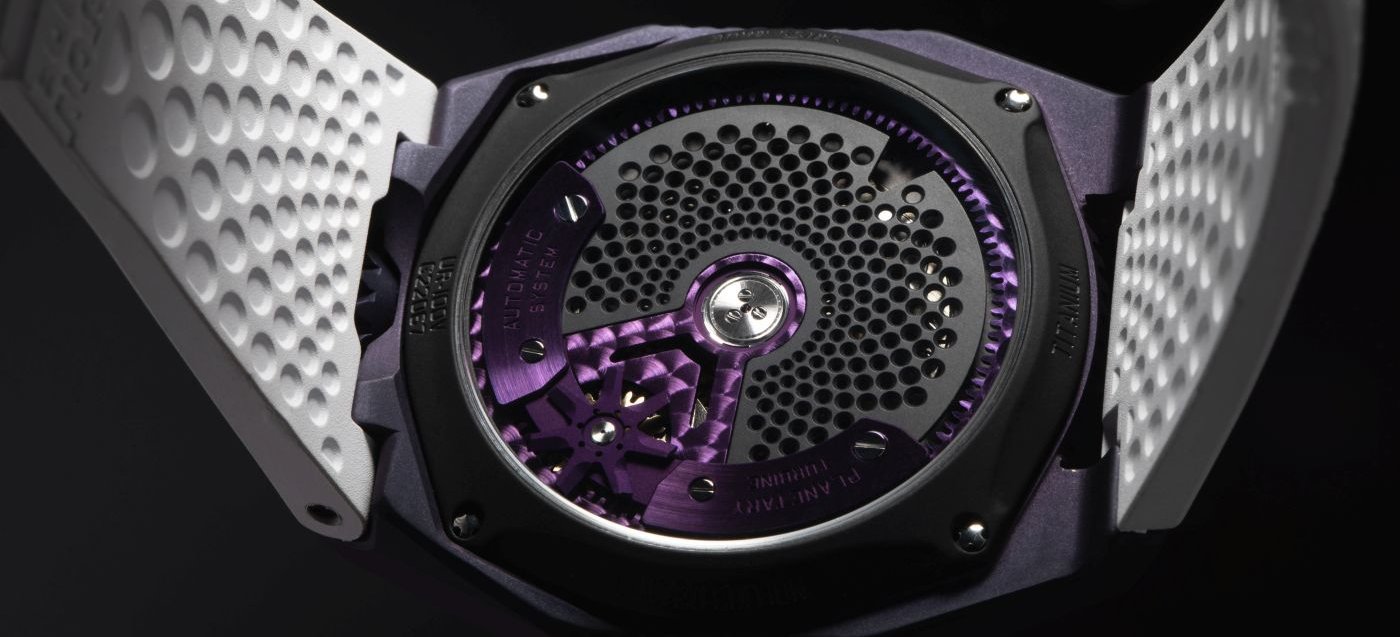 Martin Frei talks about the colour that is so special to him: “I like the fact that a colour is much more than what we can perceive. The colour spectrum visible to our eyes ranges from red to violet. Beyond that shade, colour turns into a waveform that our eyes can no longer detect, ultraviolet. I am fascinated by the idea of creating a watch that celebrates this boundary, this tipping point, this transition from perceptible to imperceptible. The UR-100V UltraViolet is about this exploration of the limits. Our UltraViolet conveys something mystical, it’s a hue that sits on the border of a dimension we call colour.”