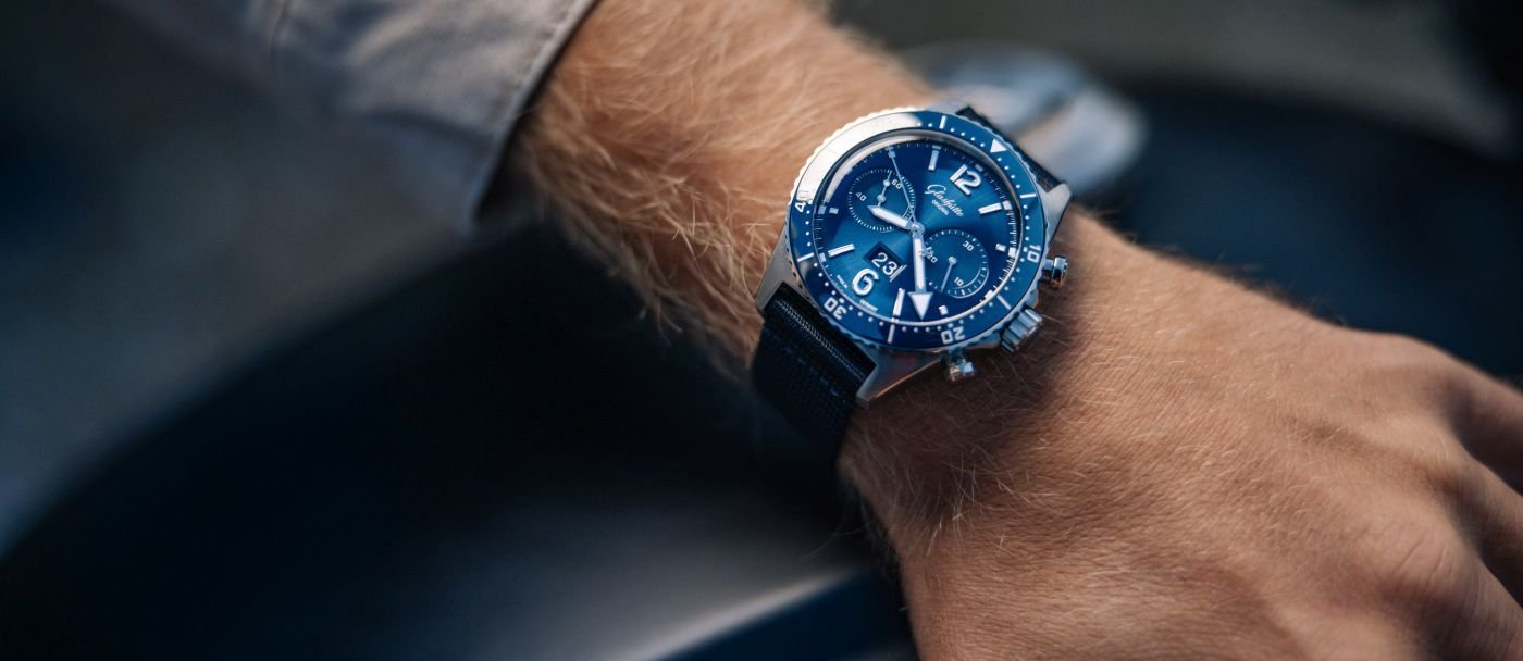 The new SeaQ Chronograph is not only an off-road companion, it’s an experience in itself – Glashütte Original‘s watchmakers and designers have made sure of it, down to the tiniest detail. The premiere model’s favourite hue is dark blue: the colour of the skies and the sea, it emanates clarity and calm. The striking stainless steel case is finely crafted and rests easily on the wrist, smooth and cool. It’s held firmly and comfortably in place by the owner’s strap of choice: a classic stainless steel link bracelet, a dark blue rubber strap or one of the high-quality grey or blue synthetic fabric straps made from recycled fishnets. The refined ticking of the Calibre 37-23 automatic movement delivers the perfect rhythm, even when traveling well off the beaten track.