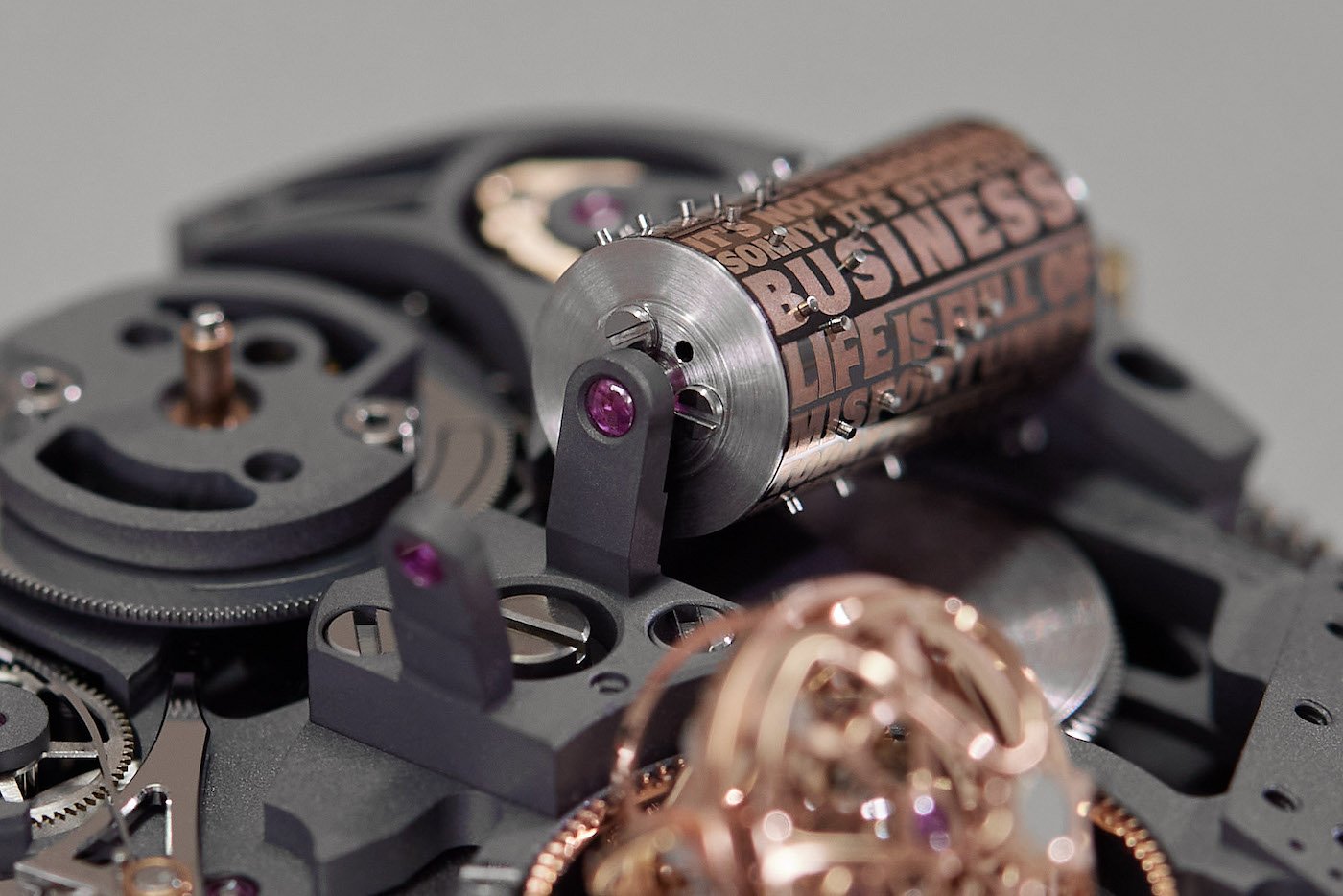 “The movement is infinitely more complex than it seems,” explains Alain Schiesser. “When Jacob approached us, he wanted a musical movement. And then the idea of making a rotating movement came up. It requires a level of coordination between the combs, a perfect adjustment of the barrels, which are tilted by some 20 degrees, plus the management of the rotation in the entire movement...” As a result, the component mechanism is built on a two-level platform.