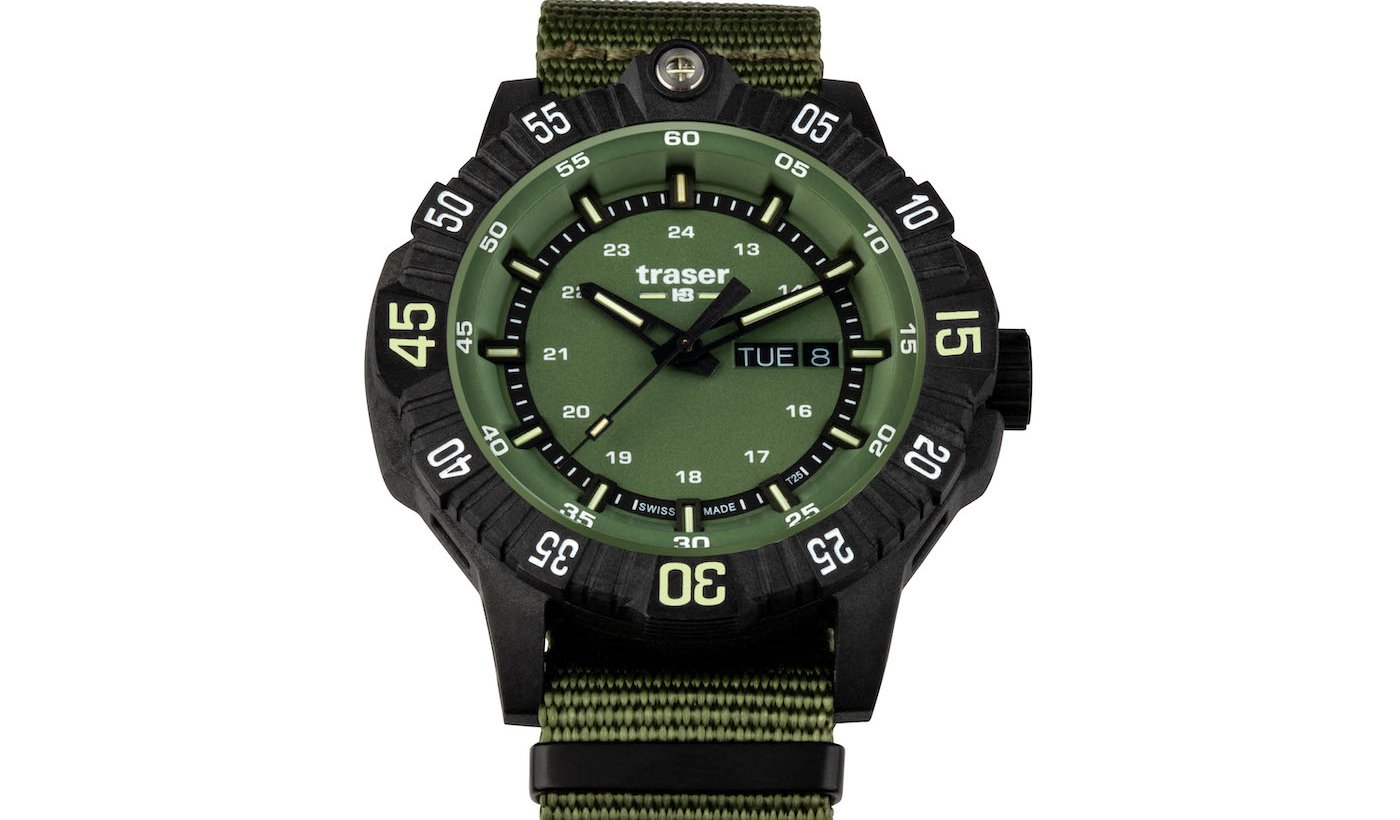 The special features of the P99 Q Tactical embody the essence of the traser brand identity, making it the ideal companion when a mission calls for perfect timing and maximum concentration. Like the world’s first luminous watch, which the Swiss company developed for the U.S. Army in 1989, trigalight luminous elements ensure that the time can be read even in complete darkness and under the most adverse visibility conditions. There is no need to worry whether the battery is charged or not, because the tritium-filled glass tubes keep the hands, dial and bezel constantly lit for years without the need for an external power source. Their brightness allows the wearer to control the timepiece at all times without any glare or attracting too much attention.