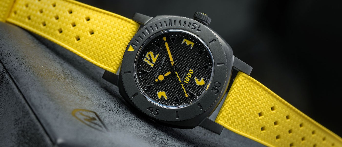 Nivada, together with the team at Undone, is going all in with a Depthmaster that truly gives meaning to the “Pac-Man” moniker and makes it resonate with the community in the know : you can practically see the ghosts scurrying and the energy pills glowing on the black screen-like dial (it’s “textured as on screen”). “Pac-Man Yellow” came naturally for the main color code on this creative collaboration for a limited edition of only 200 timepieces. And the “high score” is still a water resistance to 1000 meters.
