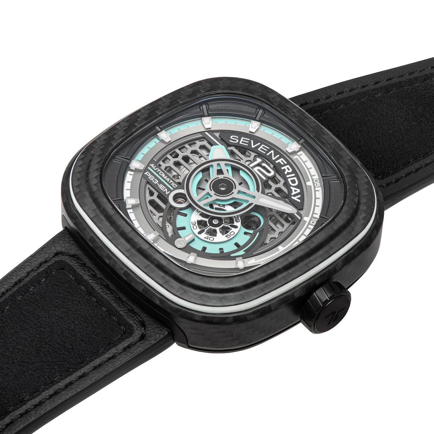s SevenFriday states, “as a brand, we may be Swiss but we’re not carbon neutral!” Quite to the contrary: “We have long been fans of carbon, not the kind of molecule common to all human beings. Nor the carbon compressed over time to become a precious diamond. No. We’re evidently talking about the one and only carbon relevant to us watch aficionados. The kind of composite material which is woven, shaped and heated to become a robust, light and dare we say beautiful case for our timepieces.”