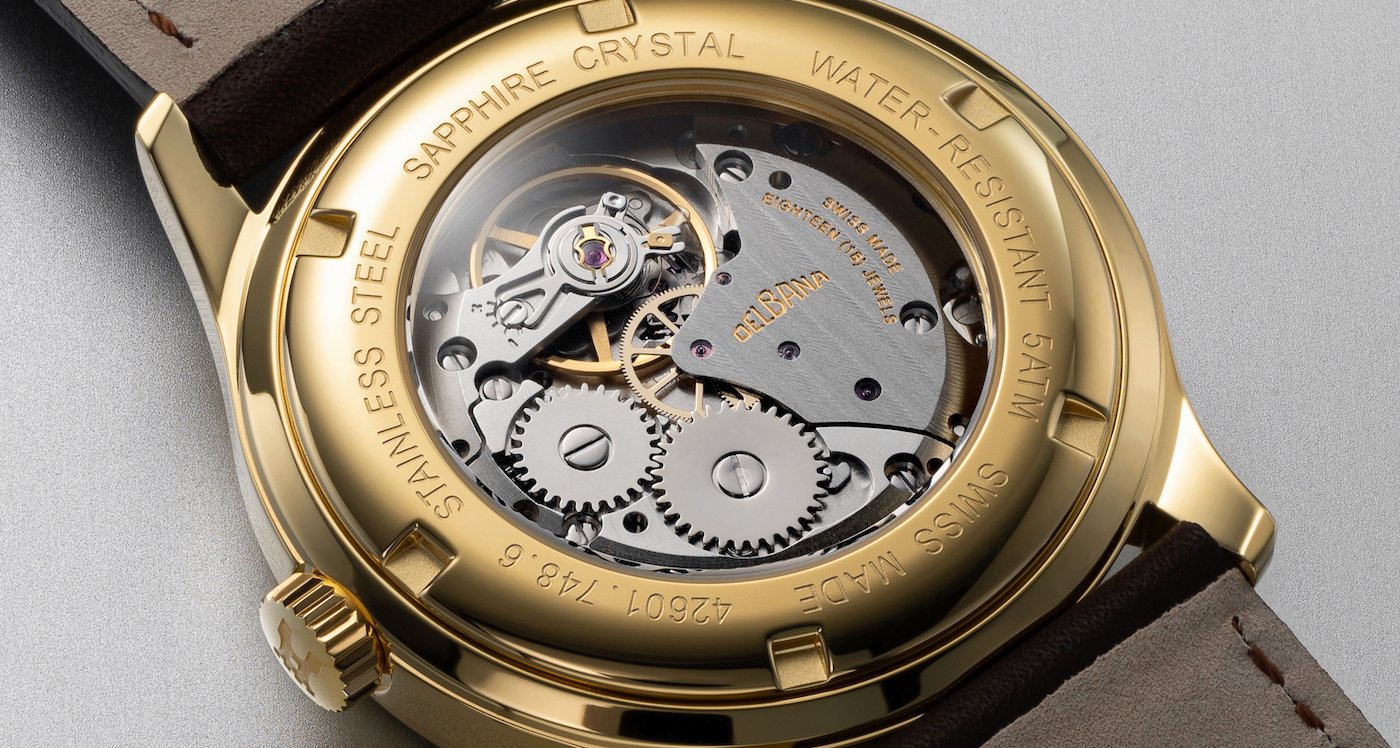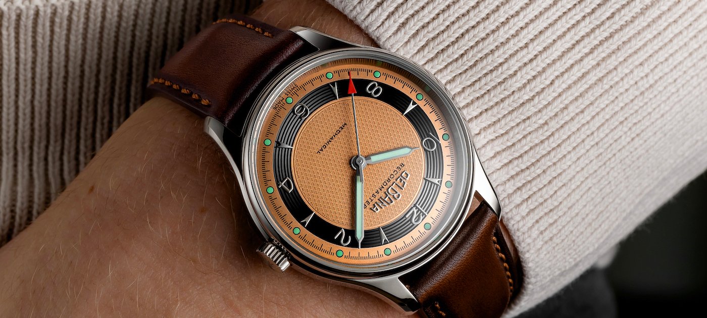 The Recordmaster Mechanical is Delbana’s first hand-wound timepiece in decades. It is a continuation of the brand’s return to mechanical timepieces in honor of 90-years with exhilarated nostalgia. Now with a hand-wound movement, it combines the refreshed look of the anniversary Recordmaster while incorporating even more original details.