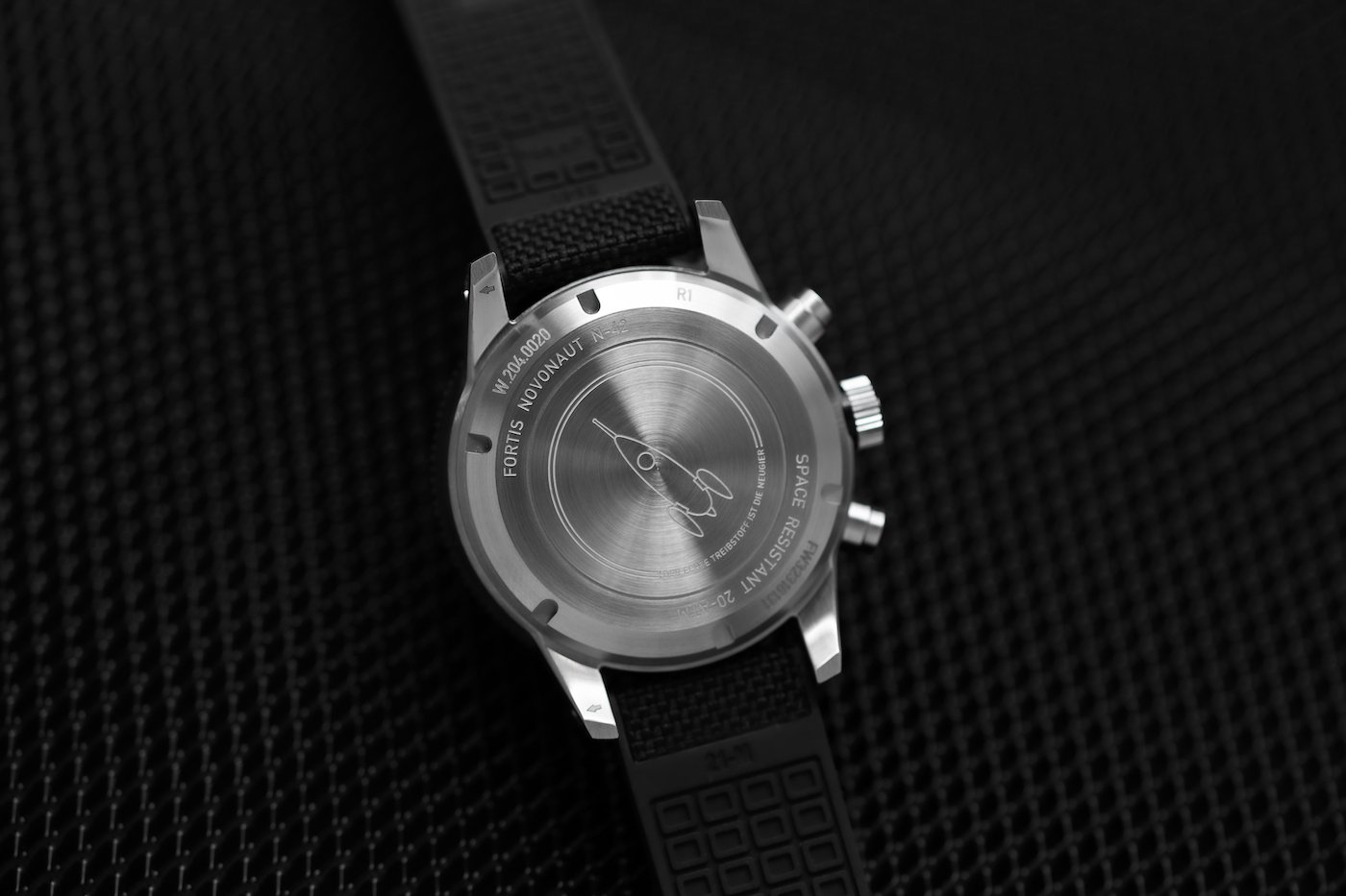 Limited to 100 pieces globally, the Novonaut dons orange highlights and a unique smoked sapphire crystal case back featuring a rocket.