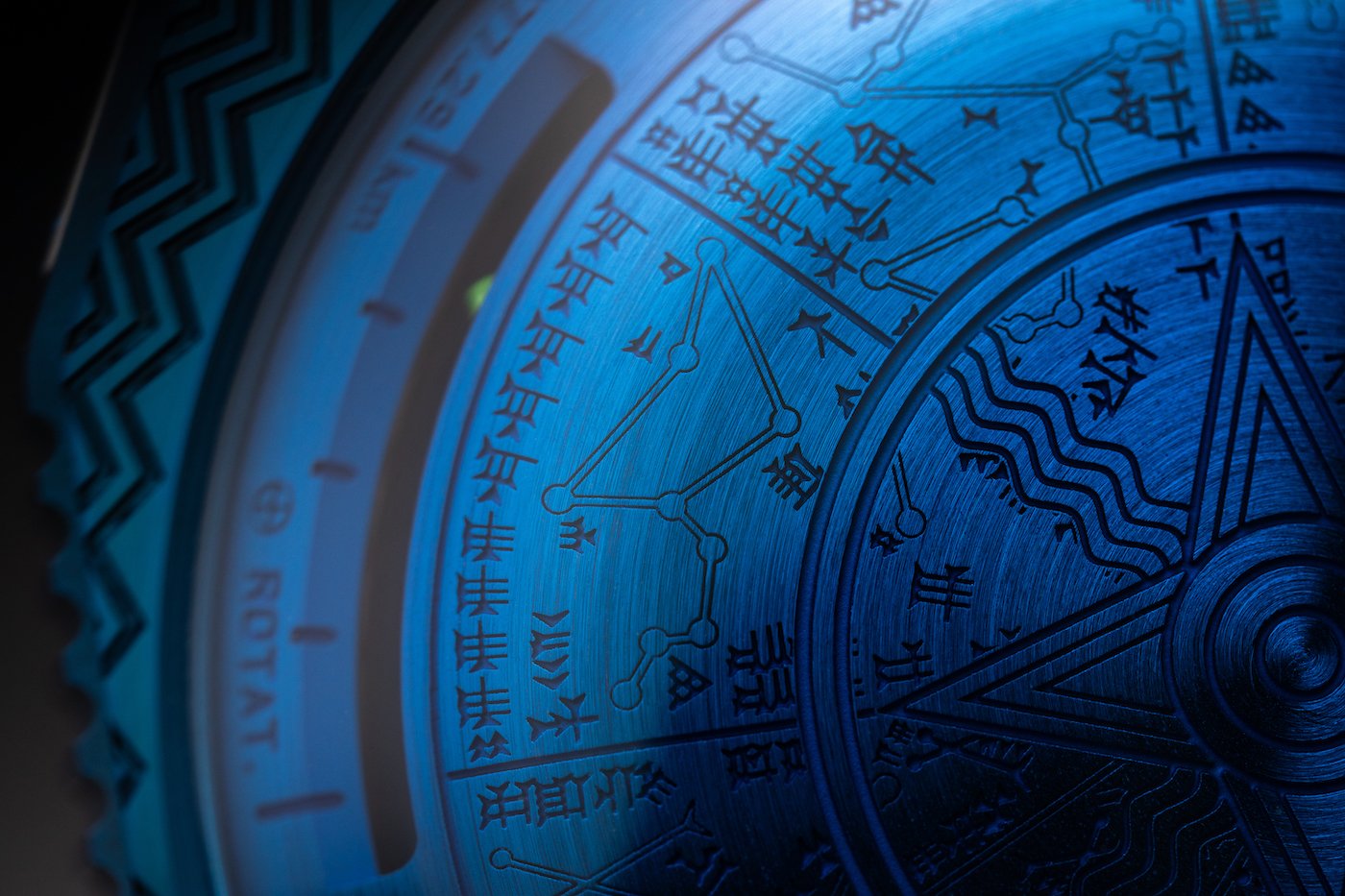 Just as with the first Time and Culture, the motifs here have been reproduced with the utmost meticulous care. The lines are fine, subtle and laser-engraved. The accuracy of the work can only be appreciated through a magnifying glass. The ridges of the motif are satin-brushed, while the hollows are micro-sandblasted to create a velvety finish designed to highlight the volumes and do justice to this priceless heritage – the very foundations of the Urwerk name.