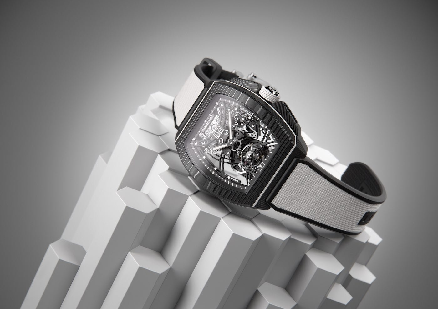 Boasting a gravity-defying flying tourbillon in titanium, and a skeletonised large date complication, both housed in a sleek tonneau case made of Titanium-Dust-High-Density carbon, Bianchet’s award-winning “Flying Tourbillon Grande Date” is a testament to the brand’s relentless pursuit of beauty and style, blending ancient design principles with cutting-edge watchmaking techniques.