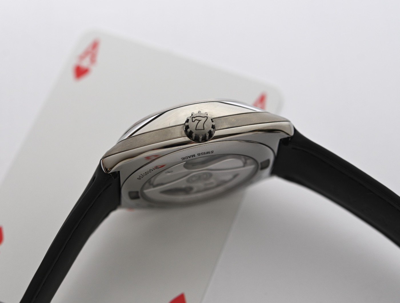 The ‘Casino’ series is playful, inspired by the atmosphere found only in casinos and the strong emotions associated with playing games of chance. Like the skilful player, the watch reveals different facets, concealing its strategy to better surprise.