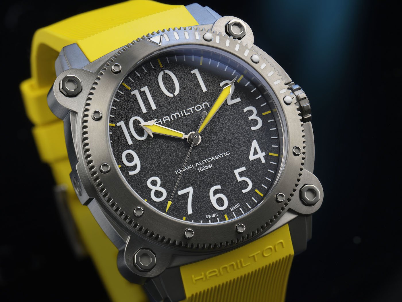 Sunlight comprises all the colors of our visible spectrum. When light penetrates water, the colours get split up. Because colors have different wavelengths, those with less energy are filtered out quickly. Yellow, combined with high contrast markers, is among the most visible in coastal waters. And while the Khaki Navy BeLOWZERO is water resistant up to an impressive 1000 meters, should the pressure exceed safety limits a valve will open to release the excess pressure to protect the internal mechanisms.