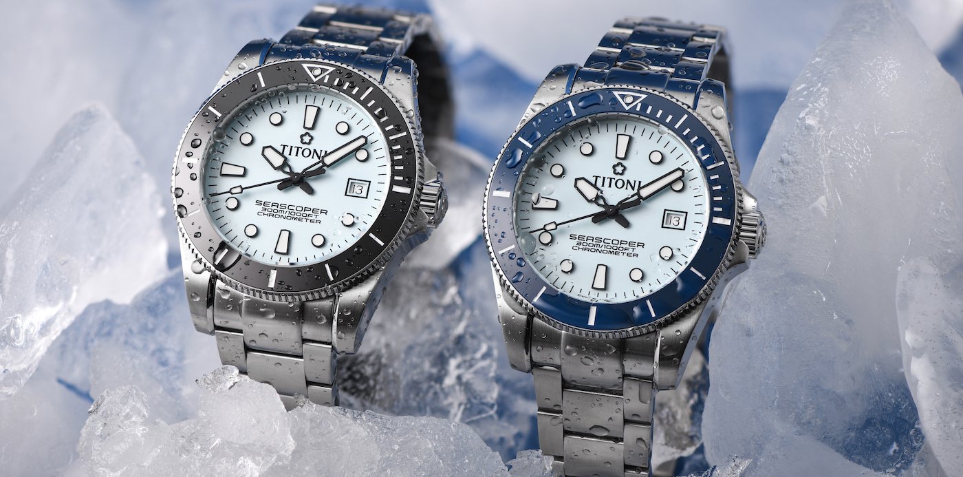 A hidden element of the Seascoper 300 – Ice Blue is the back of its case, whose surface is porthole-shaped and smoothly polished to create a mirror-like effect. The folding clasp designed for this model guarantees easy and safe bracelet extension. With the plum blossom logo on the push button, it carries the quality seal of every Titoni watch.