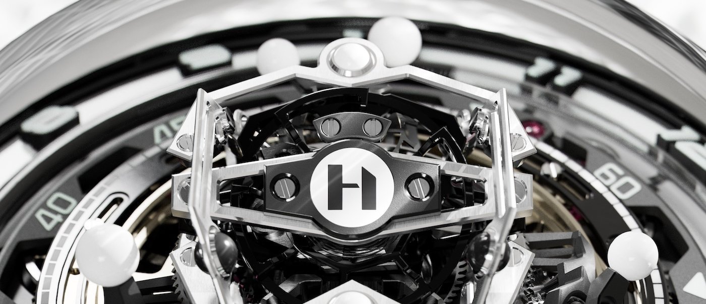 The timepiece’s brilliance is underscored by the haute horlogerie tradition in its craftsmanship, from the titanium tourbillon cage to the chamfered, drawn, polished, and satin-finished bridges, and the polished screw heads, along with six smaller spheres, each 1.5mm in diameter. The technical efficiency of HYT’s conical tourbillon thus enables the harmonious animation of the spheres’ independent rotations.