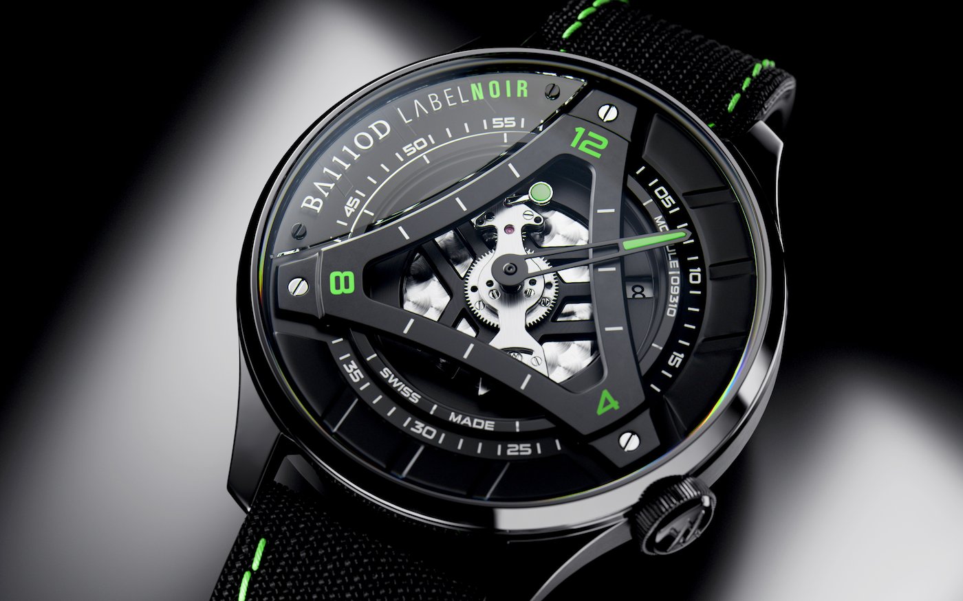 his exceptional collaboration between BA111OD and Label Noir, a pioneer and reference in creative luxury dedicated to the art of personalisation, brings the Chptr_Δ.5 Label Noir Limited Edition into a new and exclusive light. “Together, we’ve explored new frontiers for our brand. Emmanuel Curti’s innovative approach, which boldly reinvents iconic pieces, deeply resonates with our vision of watchmaking. This partnership has allowed us to combine our ideas and create a unique watch,” says Thomas Baillod, founder of BA111OD. The Chptr_Δ, celebrated since its launch last year for pushing the boundaries of traditional watchmaking with its novel interpretation of time, is sure to captivate with this ultra-exclusive series featuring matte and glossy black with a touch of zesty green.