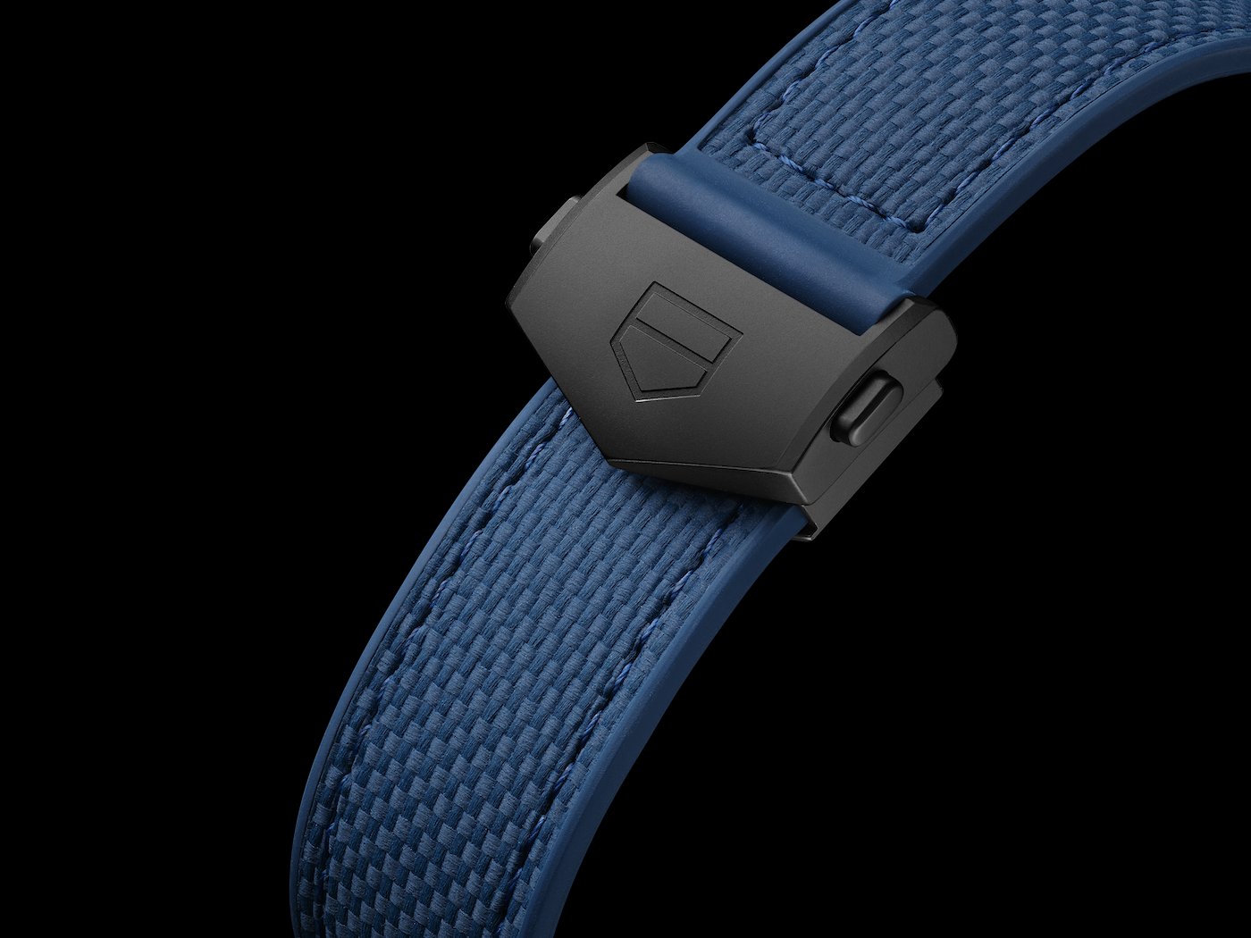 - Sandblasted black DLC grade-2 titanium folding clasp with double safety push-buttons; TAG Heuer shield