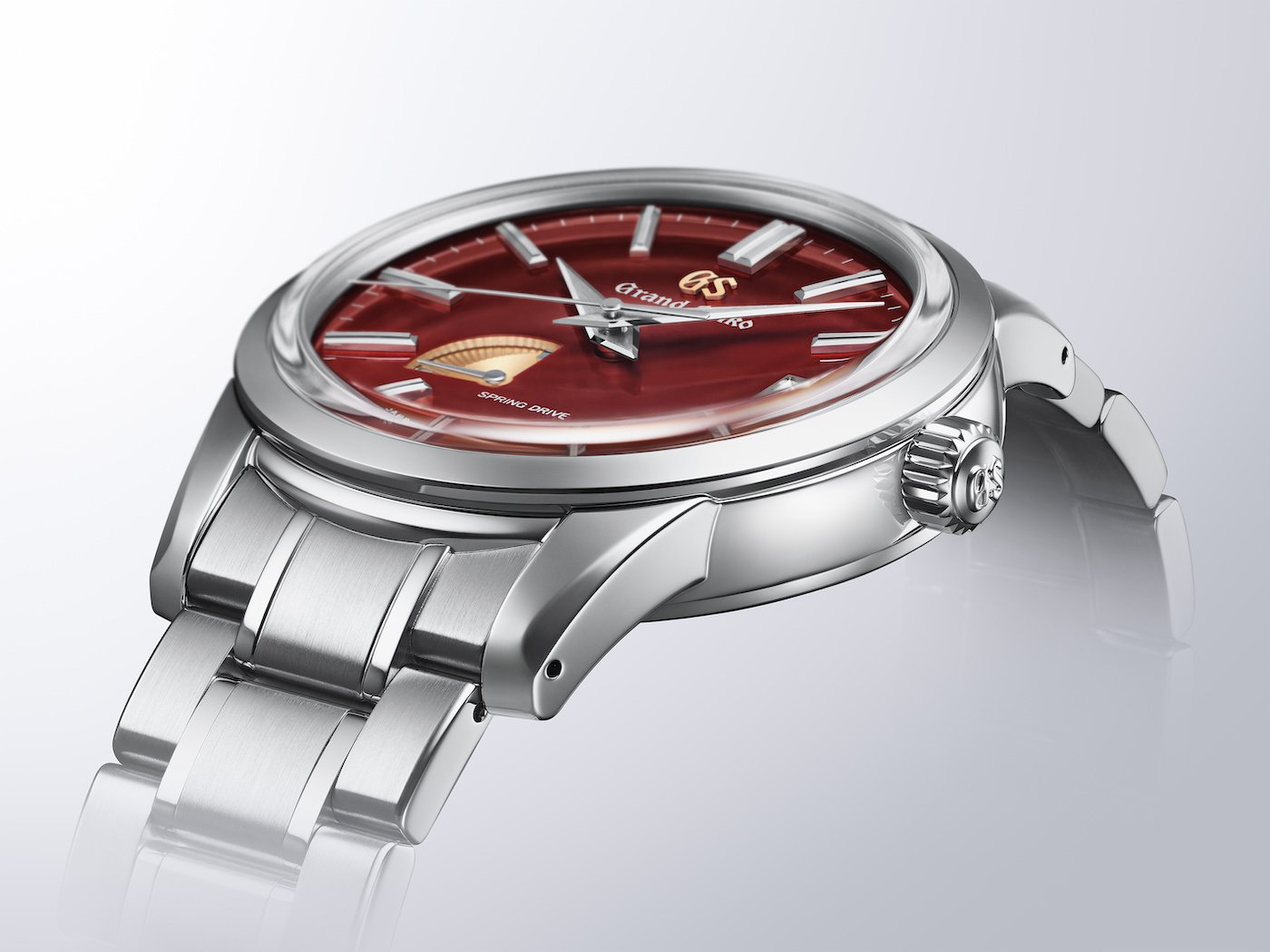 The watch’s recessed power-reserve indicator in copper pink adds depth while enhancing legibility and providing a point of contrast to the design. The rose gold color of the GS logo and the vibrancy of the red dial beautifully evoke the mesmerising transition of changing leaves in all their autumnal glory.