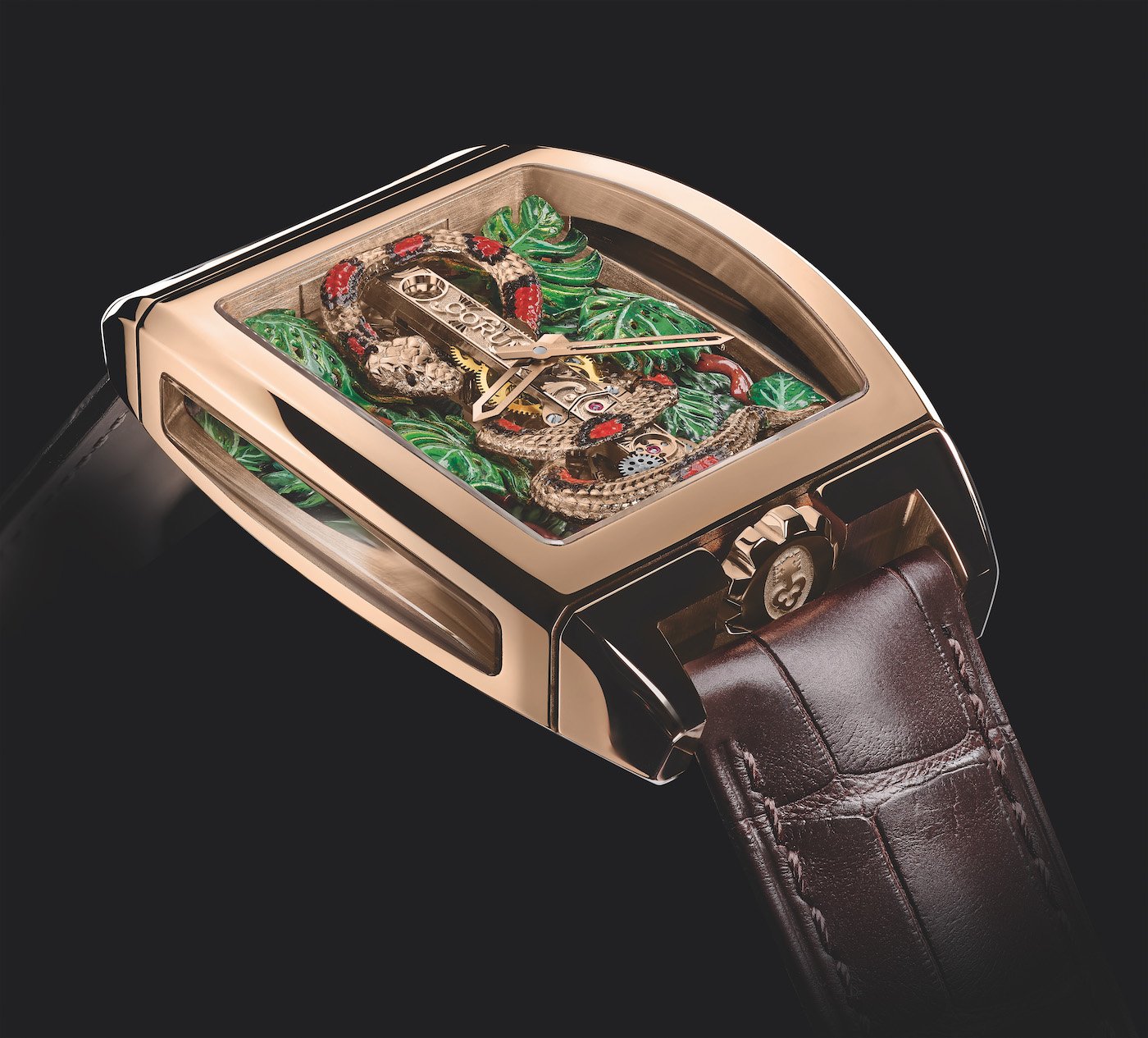 The Swiss watchmaking house continues to push the boundaries of haute horlogerie and revisits a storied model from the 1980s designed to highlight its patented movement. In this modern reboot, a serpent gracefully entwines around the movement, blending artistic flair with technical mastery.