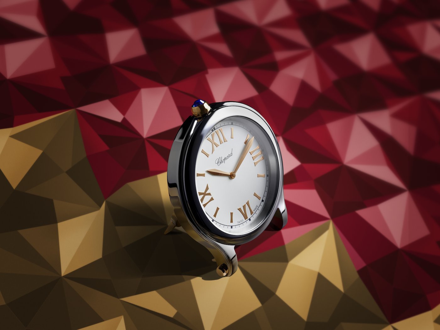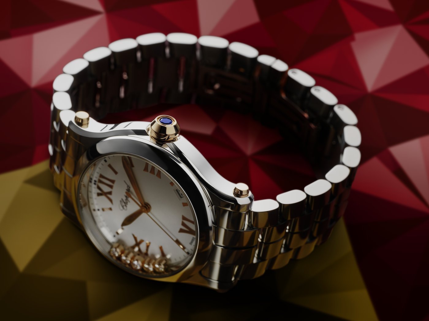 The new 36-millimetre ladies’ watch features a stunning, slim stainless steel case measuring just 10.46 millimetres and an unusual mix of precious materials. The crown, lug screws, hands, Roman numerals and hour markers of the Happy Sport Signature Collection are made of ethical rose gold - 100 percent responsibly sourced. The case and bracelet with double folding clasp also make a statement in terms of sustainability. They are made of Lucent Steel, a steel with a recycling rate of 80%.