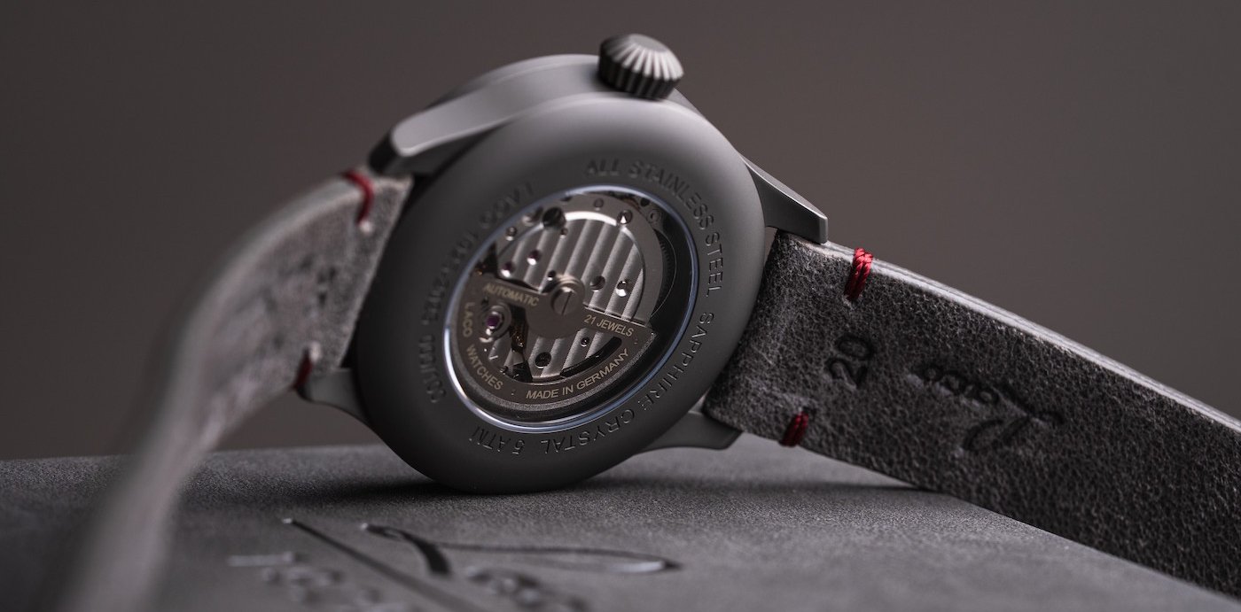 Frieda is strictly limited: only 100 pieces will be produced – one for each year of Laco’s history. Each watch features an individual serial number engraved on the case back. Designed in the classic type A style, the dial reflects a layout that has defined the look of Laco pilot watches for decades. It features a finely textured surface and a subtle red tone – a nod to the signature color long associated with the brand. The case also incorporates familiar design elements: its dark sandblasted finish lends the watch a functional, authentic appearance while emphasizing its deep roots in aviation heritage. A side engraving with the years 1925 – 2025 visibly marks the historic significance of this special edition at first glance. With an estimated value of around €500, Frieda reflects not only its exclusivity but also Laco’s unwavering commitment to quality and attention to detail.