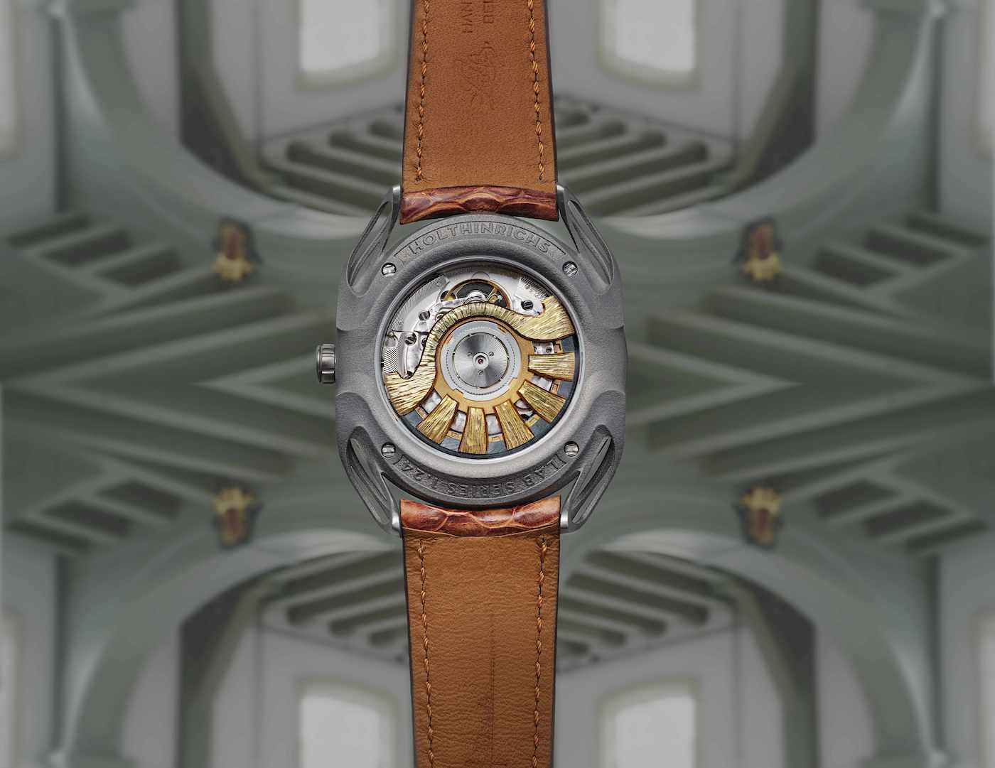A spontaneous encounter between Holthinrichs and Chris Alexander sparked this fruitful collaboration between creative minds. Chris’ background in the arts and the world of theatre aligns seamlessly with Holthinrichs’ vision of artistry in horology. His craftsmanship brought an added refinement to the watch, elegantly capturing the history and romance of Holthinrichs’ heritage.