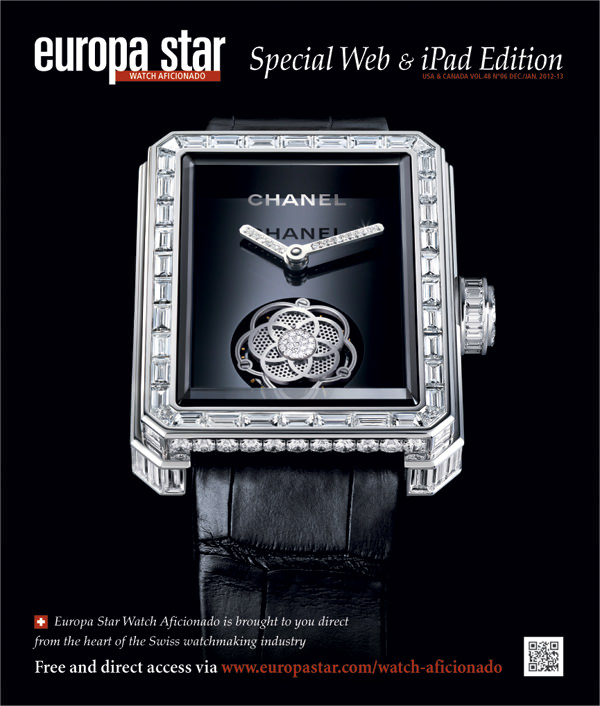 The 28.5mm by 37mm Première Tourbillon Volant model features a case constructed on two levels that allows for numerous possibilities of precious stone setting. The minute attention to detail paid to this piece can be seen in the delicate diamond-set hands and the diamond-set cabochon of the camellia flower that rotates once every minute in the 6 o’clock position. This is mounted on a flying tourbillon powered by a manually-wound TDC10 movement with 40 hours of power reserve. The exceptional level of finishing on the movement includes hand chamfered, drawn and circular-grained components as well as Côtes de Genève decoration.