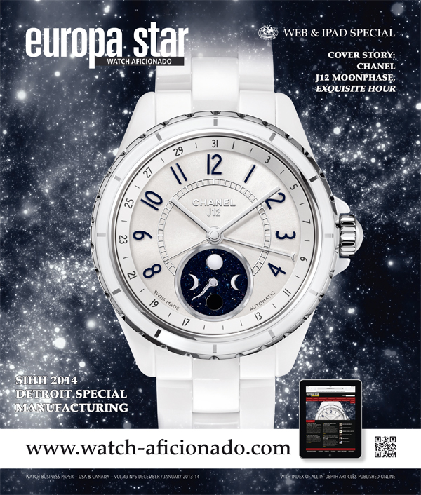 38mm case in high-tech white ceramic with matching multi-link bracelet in high-tech white ceramic. Brushed opaline dial with Arabic numerals, circumferential date scale with central hand indication, aventurine moonphase disc at 6 o’clock with hand indication. Powered by a self-winding mechanical movement with a power reserve of 42 hours and water resistant to 100 metres.