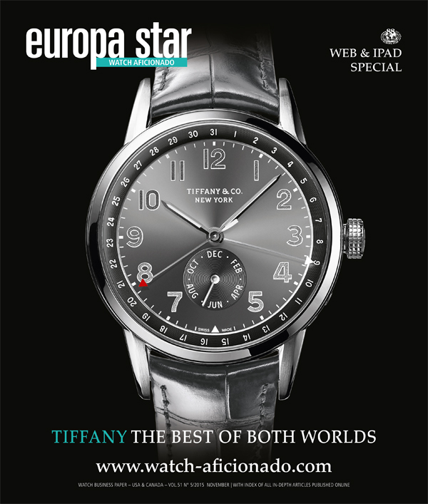 CT60® ANNUAL CALENDAR LIMITED EDITION by Tiffany Limited edition of 60 pieces, individually numbered. Functions: Annual calendar indicating the Date and Month with Hours, Minutes, Seconds. Case: 40mm in 18k white gold. Dial: Grey soleil finishing with silver poudré numerals. Crystal: Sapphire top and case back glass. Strap: Hand stitched grey alligator, with alligator lining. Buckle: Deployment buckle in 18k white gold. Movement: TCO.0402 Self-winding mechanical. Movement Decoration: Côtes de Genève, Colimaçon and Perlage techniques. Power Reserve: 42 Hours. Water Resistance: 10ATM/100M/330F. Price: $20,000. www.tiffany.com