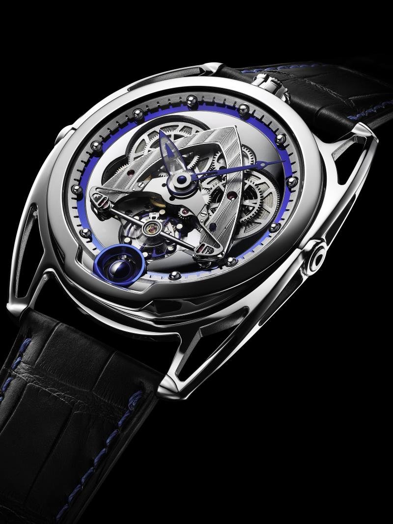 Jewelling: 35 jewels - Diameter: 30 mm - Power reserve: 6 days, ensured by a self-regulating twin barre) - Specificities: Titanium balance wheel with white gold inserts, optimized for temperature differences and air penetration . De Bethune" balance-spring with flat terminal curve. Silicon escape wheel . Spherical moon-phase indication accurate to a degree of one lunar day every 122 years . Triple pare-chute shock-absorbing system . - Frequency: 28,800 vibrations per hour