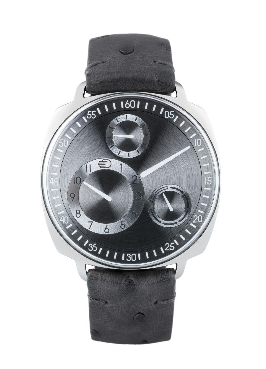 Technical specifications : Functions : Hours.Minutes.Seconds.Week Days – Movement : Patented ROCS 1. 3 - Ressence Orbital Convex System - driven by the minute axle of a specially customised 824/2 calibre. Caseback winding and time setting via lever. Self-winding. 36 hours power reserve.