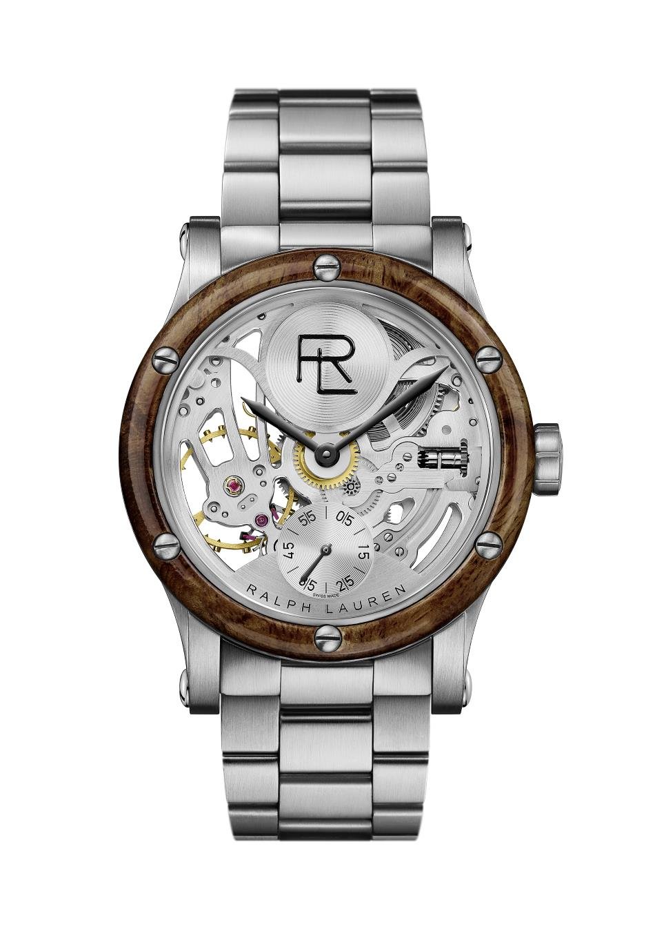 Movement: Mechanical manual winding - Swiss manufacture grey skeleton movement, exclusively designed for Ralph Lauren - Caliber: RL1967, 16 3/4 ’’’, 18 jewels - Frequency: 18,000 vibrations/hour (2.5 Hz) -Power reserve: 45 hours - Components: 156. Functions Hours, minutes, seconds subdial at 6 o’clock