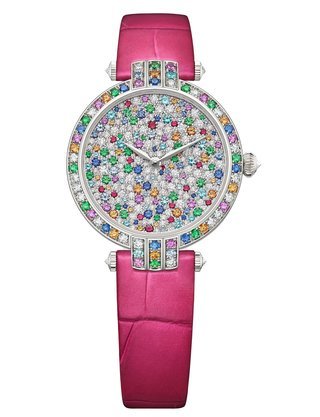 Flooded with the light of 404 diamonds and 43 pink sapphires, the Ocean Waterfall Automatic 36mm demonstrates the signature qualities of the Ocean family - including a retrograde small second display and an excentered hours and minutes counter.