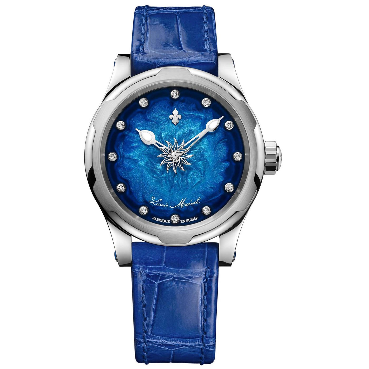 Each of the dials in the Sundance collection is unique and manufactured following a method considered by Louis Moinet to be “totally disruptive”. A key element in this process is a powder composed of microscopic particles that illuminate when exposed to the light. The brand will not confirm if differing doses of this chromatic, luminous base are the sole reason for the unique appearance of each dial. Whatever the reason, the intensity of the Sundance’s “disruptive” colours is quite stunning.