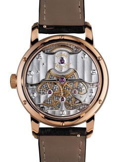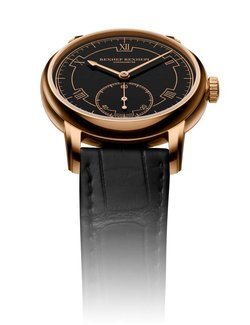 The Chronomètre Contemporain is officially certified by the Besançon Chronometer Observatory and indicates the hours, minutes and seconds. The movement also features a stop seconds and zero-reset mechanism to allow a precise time setting. As soon as the crown is pulled out to the time setting position, the mechanism implanted stops the balance and instantly returns the second hand to zero.