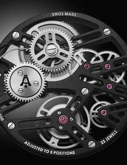 Angelus A-300, mechanical hand-winding tourbillon movement. Power Reserve 60h. Frequency 4 Hz / 28,800 vph