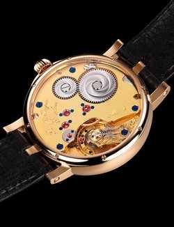Hour and minute indication, eccentric second, moon phase, complete calendar, second hand stop