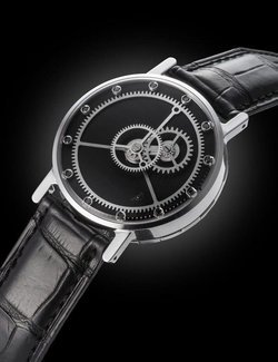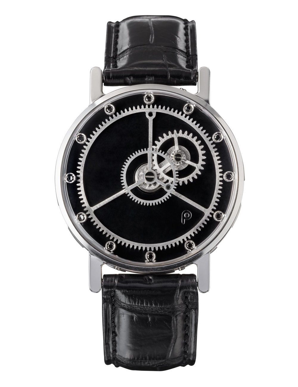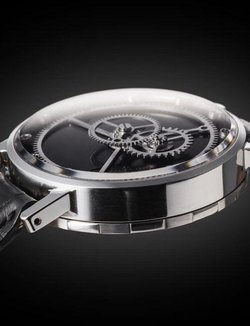 Minimal and orbital. Three outsized gear wheels tell the time: