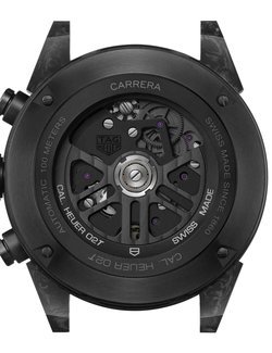 Fitted with an in-house Calibre Heuer 02T movement, this 45 mm tourbillon gets its name – Phantom – from the deep black colour of the mechanical components at its heart. The Calibre Heuer 02T has been certified by the Contrôle Officiel Suisse des Chronomètres (COSC), meaning that the timepiece has passed rigorous testing conducted by the Swiss institute responsible for certifying the precision of mechanical watches.
