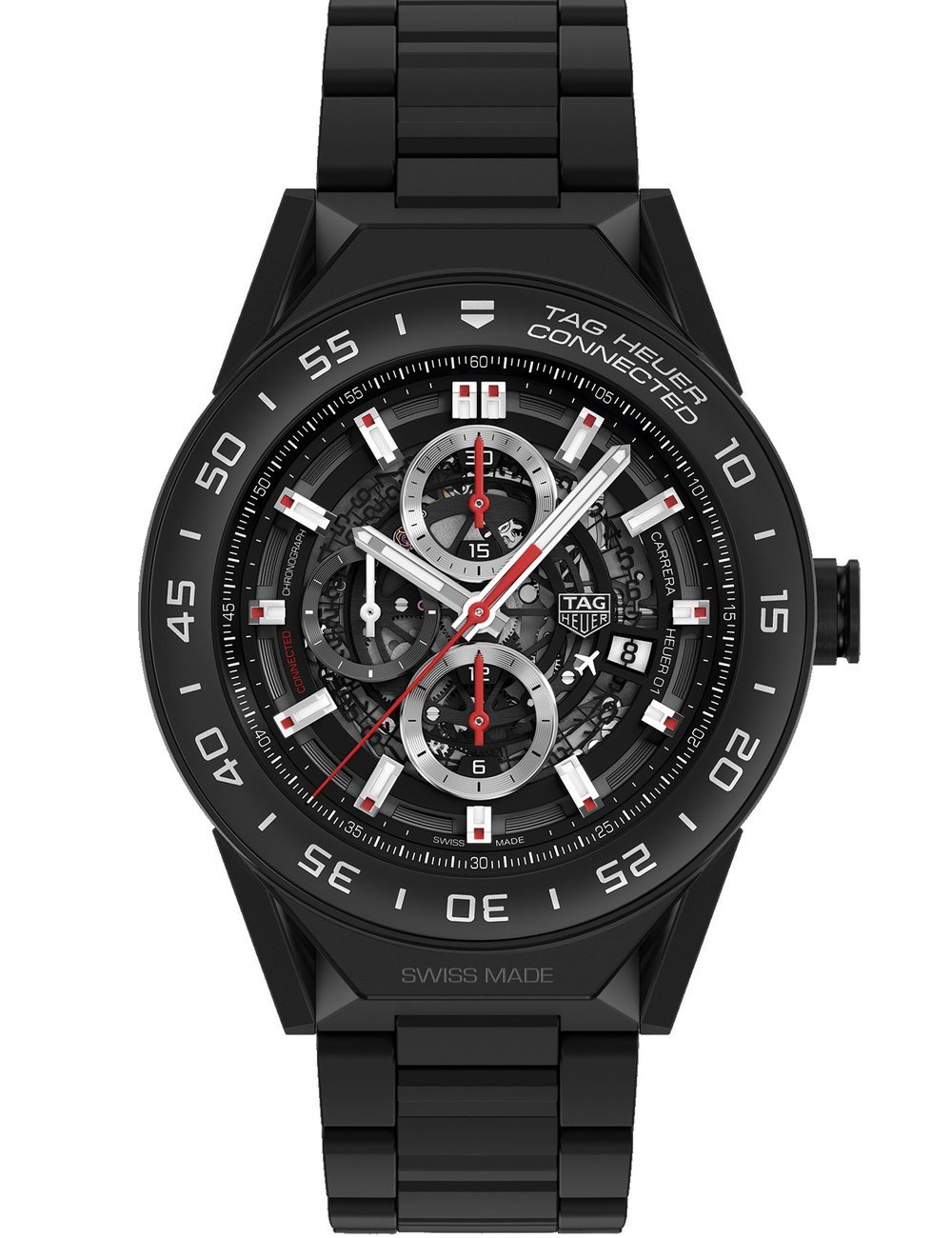 a black matte-finish mesh ceramic strap with H-shaped links is