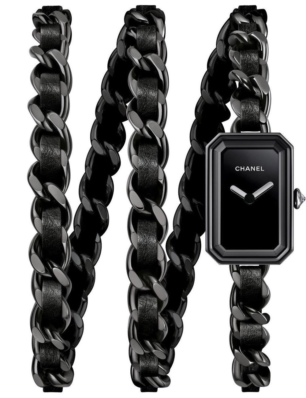 The first watch created exclusively for women in 1987 by CHANEL, inspired by the octagonal shape of the N°5 bottle-stopper and that of place Vendôme, the Première is an icon since 30 years. With an ADLC-treated strap and case, and black-lacquered dial, the new limited edition Première watch embraces intense black for an even more rock look.