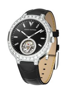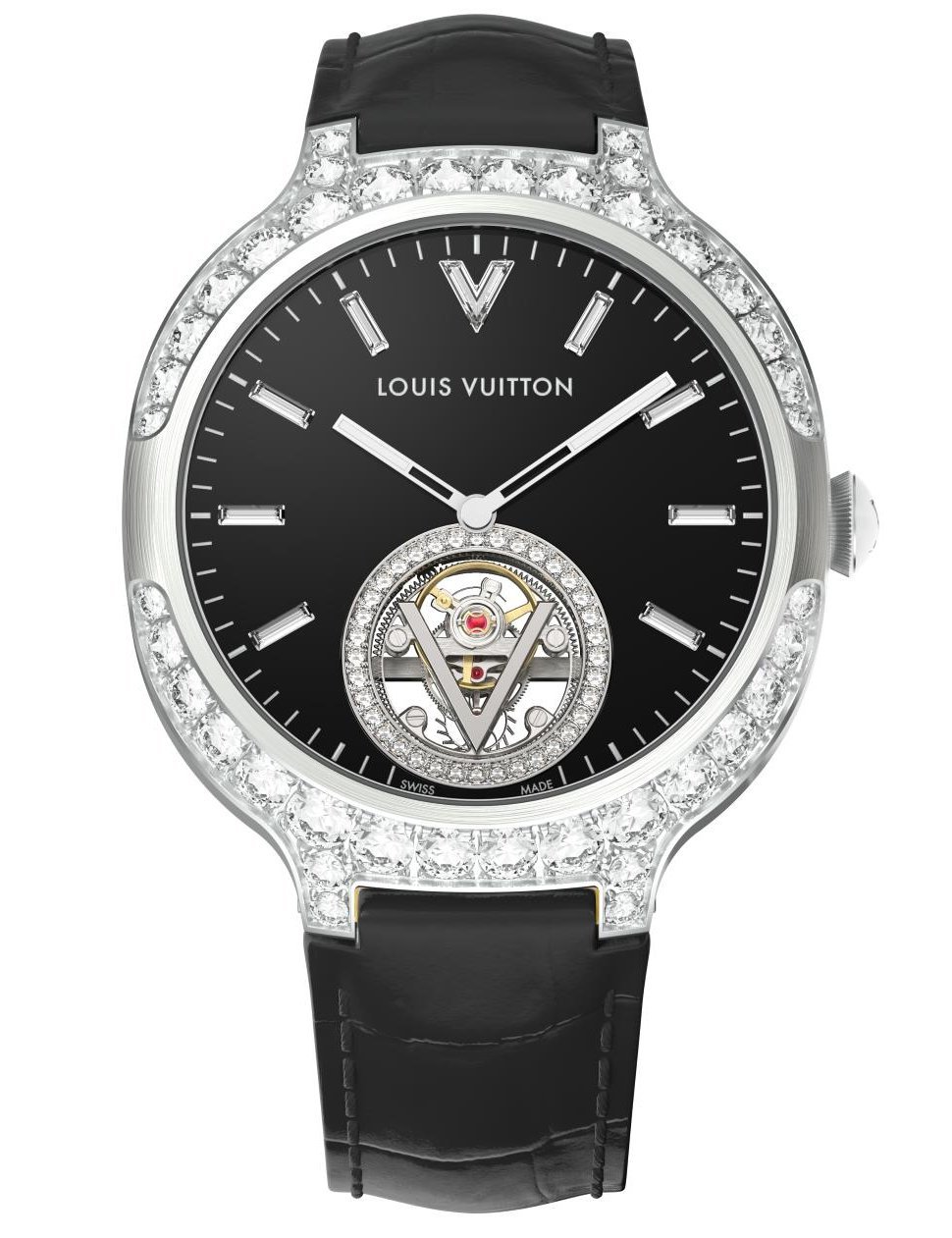 presented in the Voyager case. Louis Vuitton has chosen a Tourbillon escapement for this high watchmaking piece designed for both men and women. This iconic complication, created over two centuries