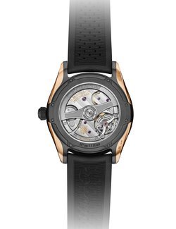 feature a design which is at the same time elegant, audacious and contemporary, with references to the industrial world. Water-resistant to 120 metres, this model is part of the Pioneer family family, which sport the sturdy case, made for the occasion from 5N red gold with black DLC-finished titanium inserts.