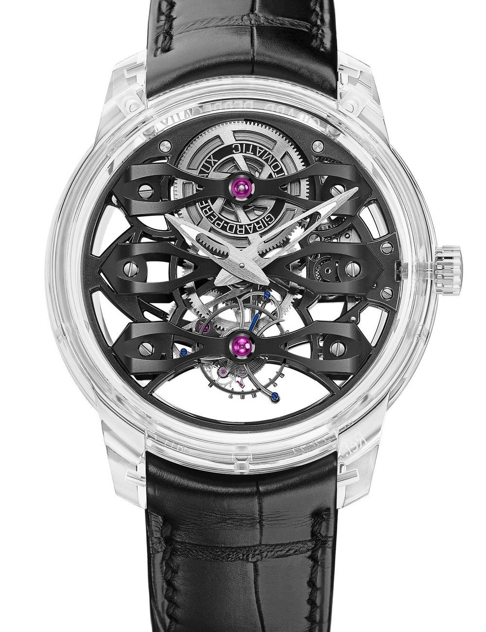 Caliber GP9400-1035 is a modified version of Caliber 9400, from which the manipulate has been removed. Almost as if this had created a vacuum, the movement finds itself in an almost weightless state.