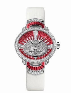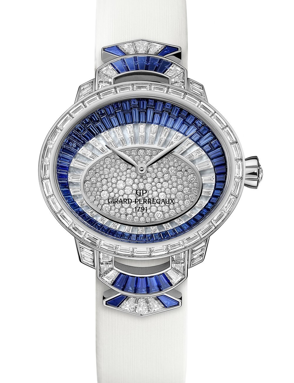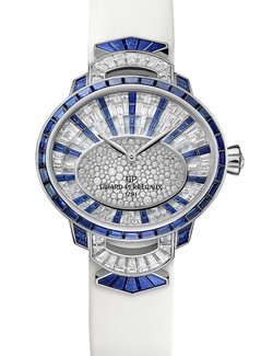 Creating this masterpiece demanded no fewer than 316 diamonds and 94 blue sapphires. The precious and exceptional character of this timekeeper is further enhanced by the case set with 23 baguette diamonds and 54 blue sapphires that reach till the lugs, creating contours that also beckon the sense of touch.
