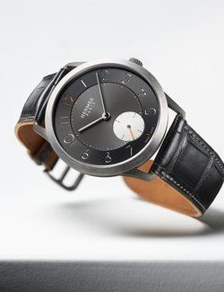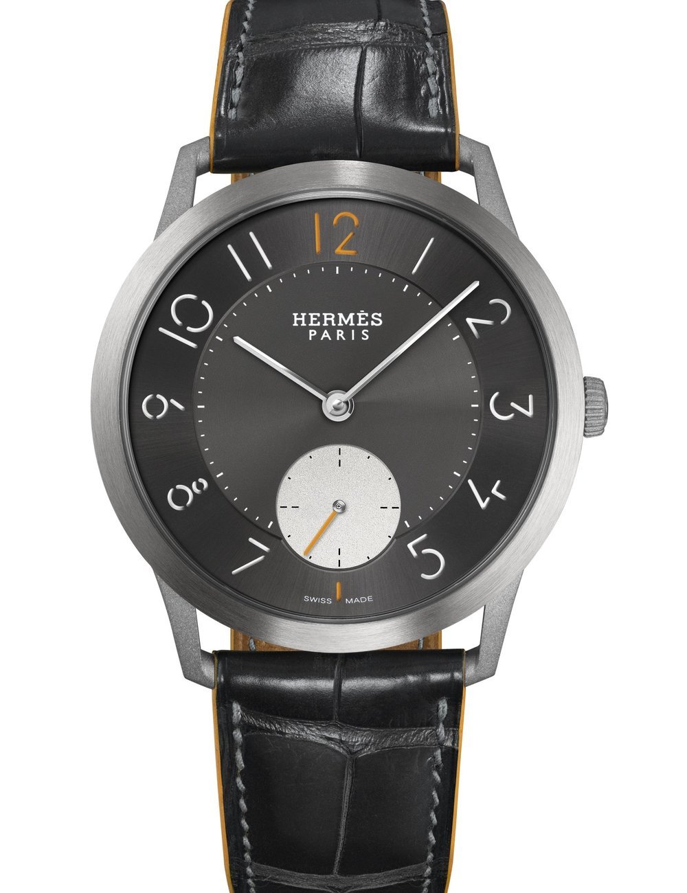 In a more relaxed style, this Slim d’Hermès Titane features an ultra-thin 39.5