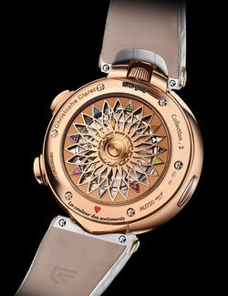 Margot is Christophe Claret’s first ladies’ watch complication. It features an ingenious mechanism that helps to ‘predict’ – or at least tries to – one of nature’s paramount questions: “Does he love me?” A simple press of the pusher at 2 o’clock brings the watch to life.