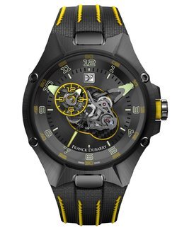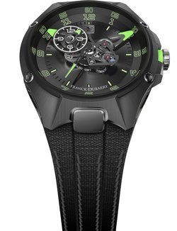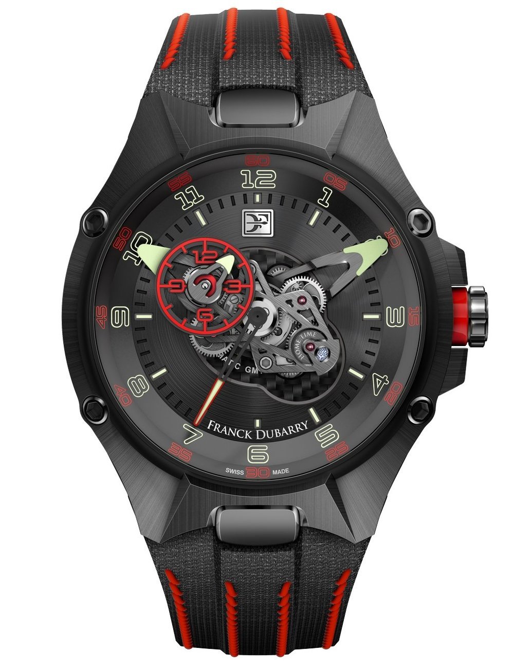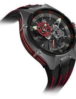 Franck Dubarry goes one step further with the innovative Crazy Wheel 2 . A collection made for extreme sport performance and avant-garde design aficionados. This in-house movement is re-engineered to display a second time zone on a disruptive reading level. In opposition with other GMT watches where second time zone is difficult to read, the CW02 offers a unique graphically engineered second time zone that gravitates around the dial with local time in order to immediately tell the owner, what time it is at home.