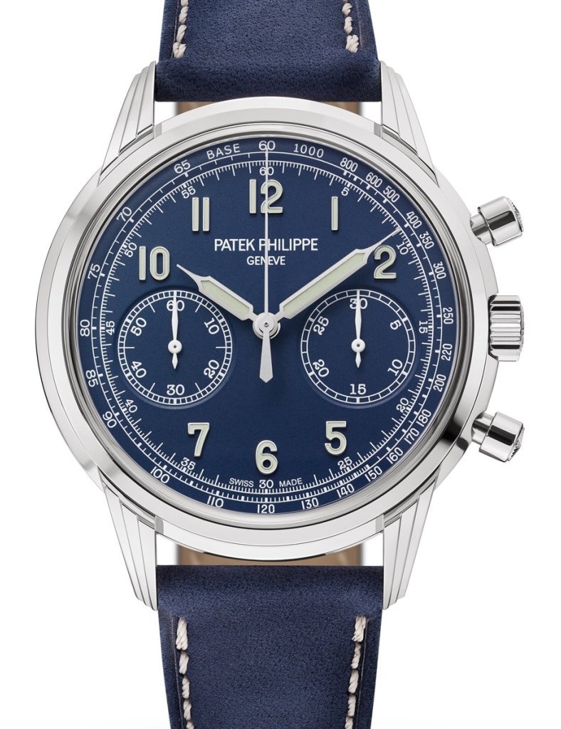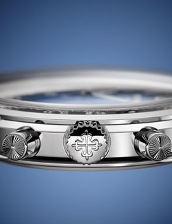 Patek Philippe has redesigned its chronograph of classic architecture for men (column wheel, horizontal clutch and manual winding), endowing it with a new white gold case with round guilloched pushers and three-tier lugs.